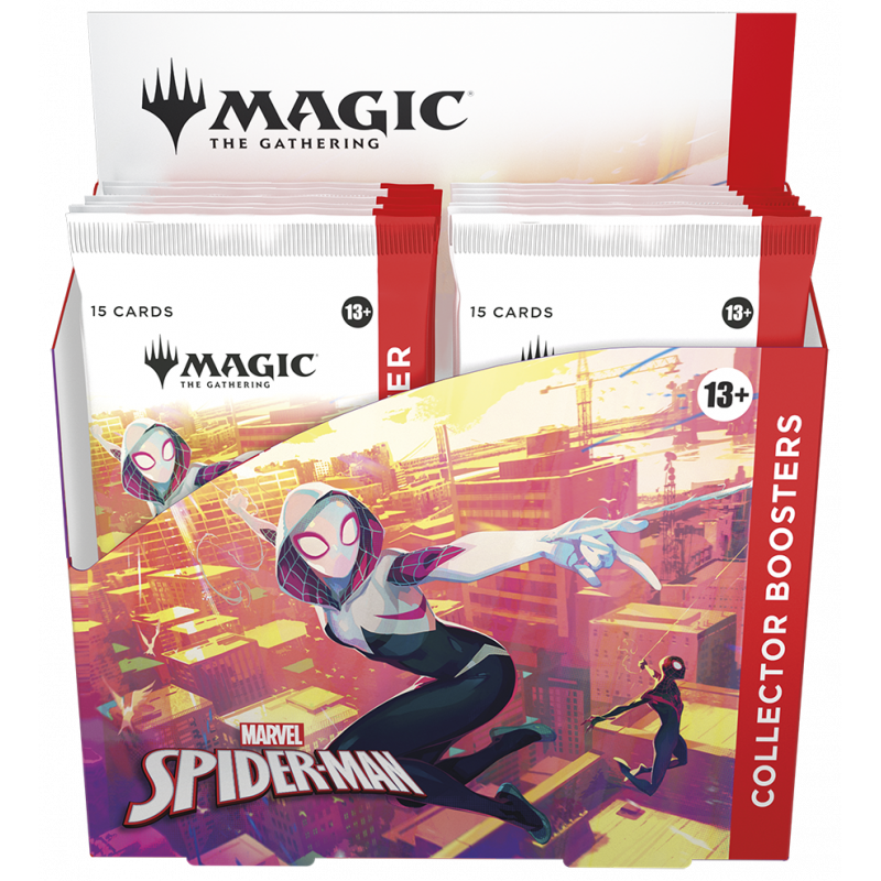 Sammler-Booster vereinen all die coolsten Karten und Foil-Kartendrucke in sich! Jeder Booster enthält seltene und/oder sagenhaft seltene Karten, Traditionelle Foilkarten, ein Standardland ohne Rand und mehr. Netzschleudernde Held*innen treffen vielleicht sogar auf noch mehr wunderschöne Foilkarten und bildhübsche Länder. Vielleicht findest du sogar die Headliner-Karte – das Kronjuwel jeder Sammlung!