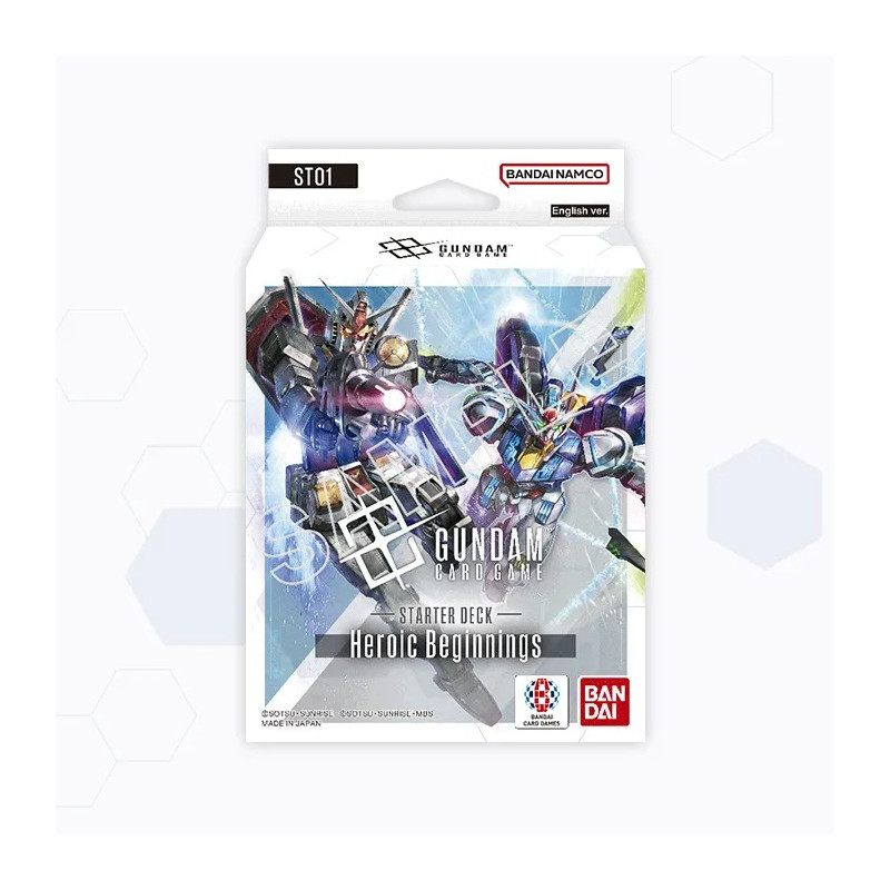 • Heroic Beginnings [ST01] A balanced Blue and White deck featuring heroes from classic and new Gundam Series – Amuro Ray/Gundam and Suletta Mercury/Gundam Aerial.