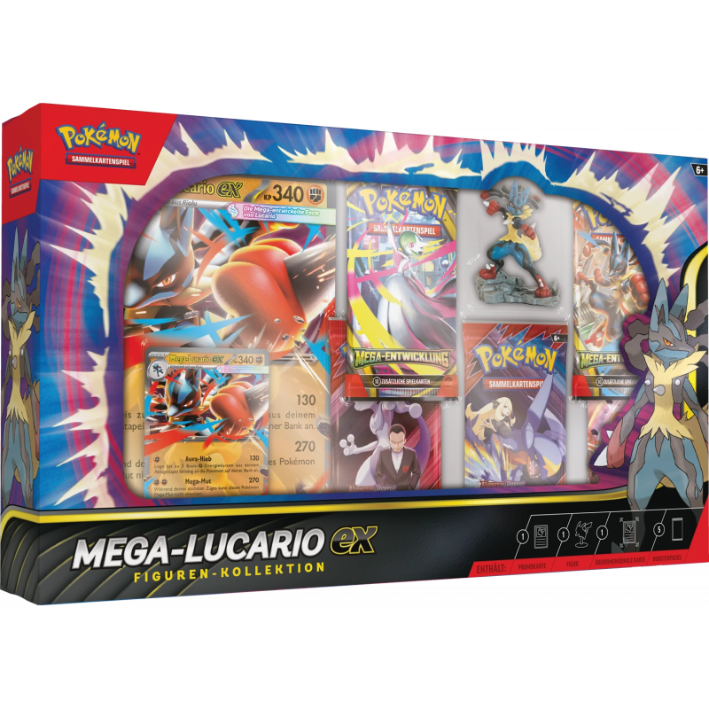 The Pokémon TCG: Mega Lucario ex Figure Collection includes: